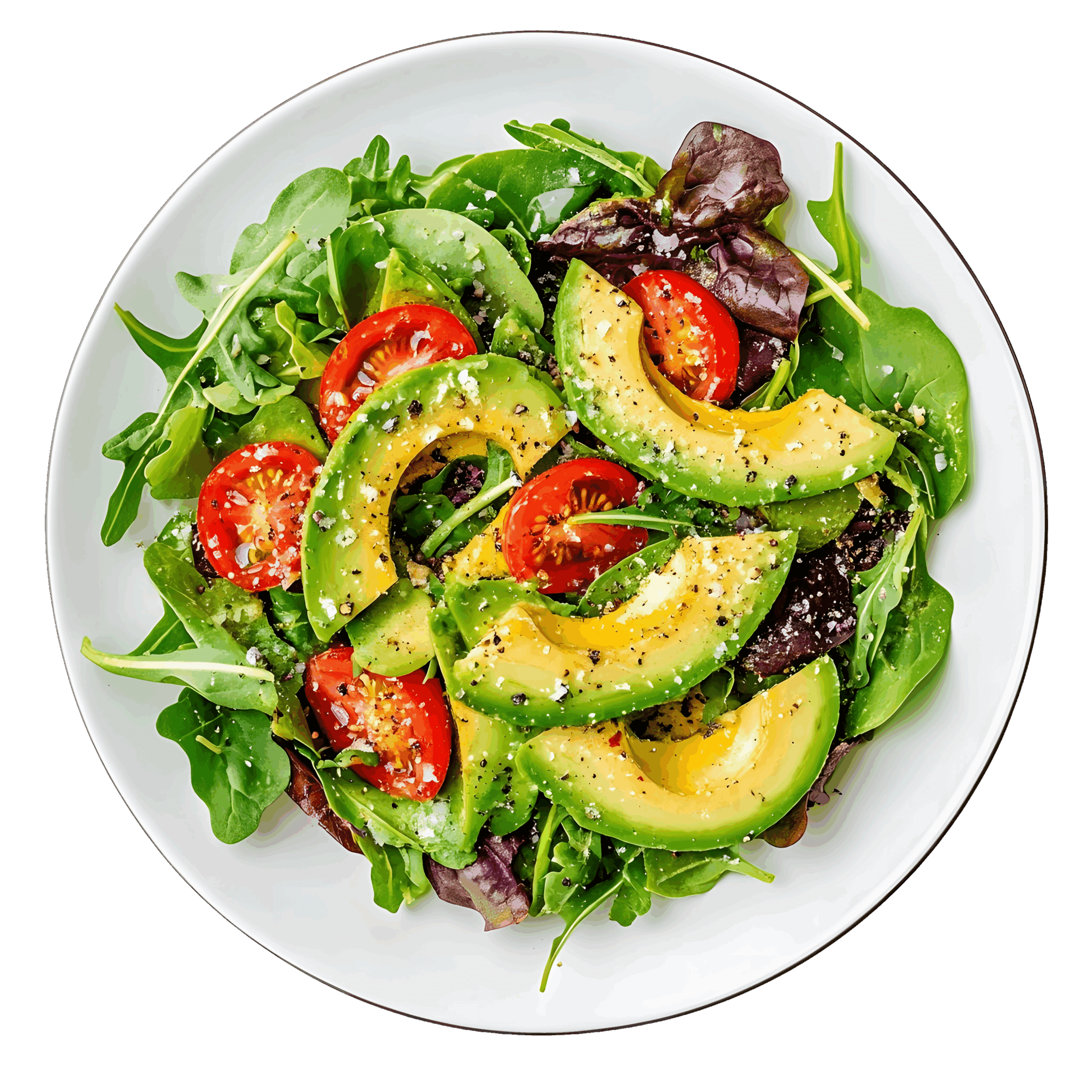 4.Avocado, pomodori, rucola, insalata, lattuga gentilina viola