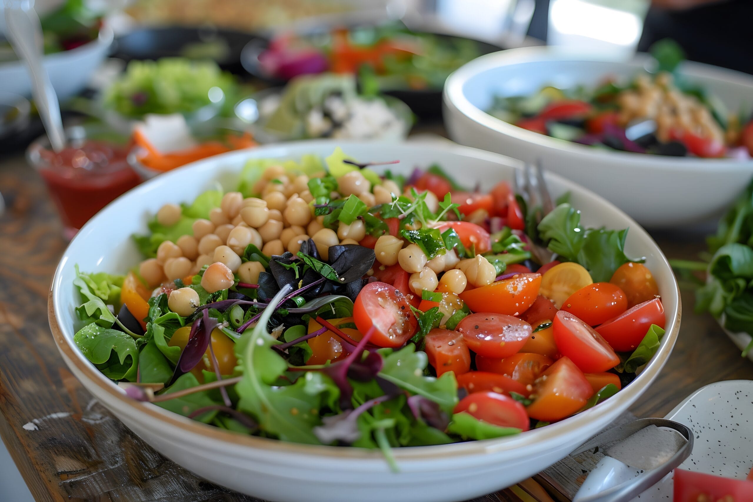 5.Ceci cotti al vapore (già confezionati), pomodorini, misticanza
