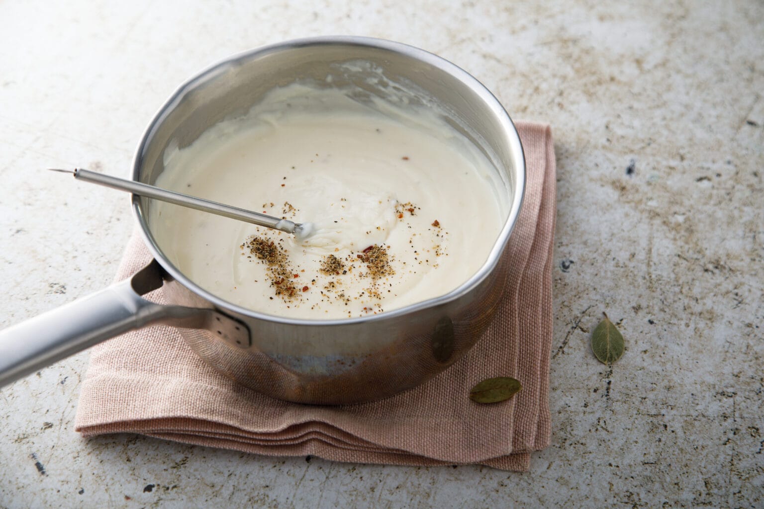 La besciamella è una preparazione base della cucina italiana, immancabile in lasagne, cannelloni, verdure gratinate e sformati. La versione light, preparata senza burro e con poco olio extravergine, è più leggera e digeribile, ma conserva comunque la consistenza cremosa tipica di questa salsa.