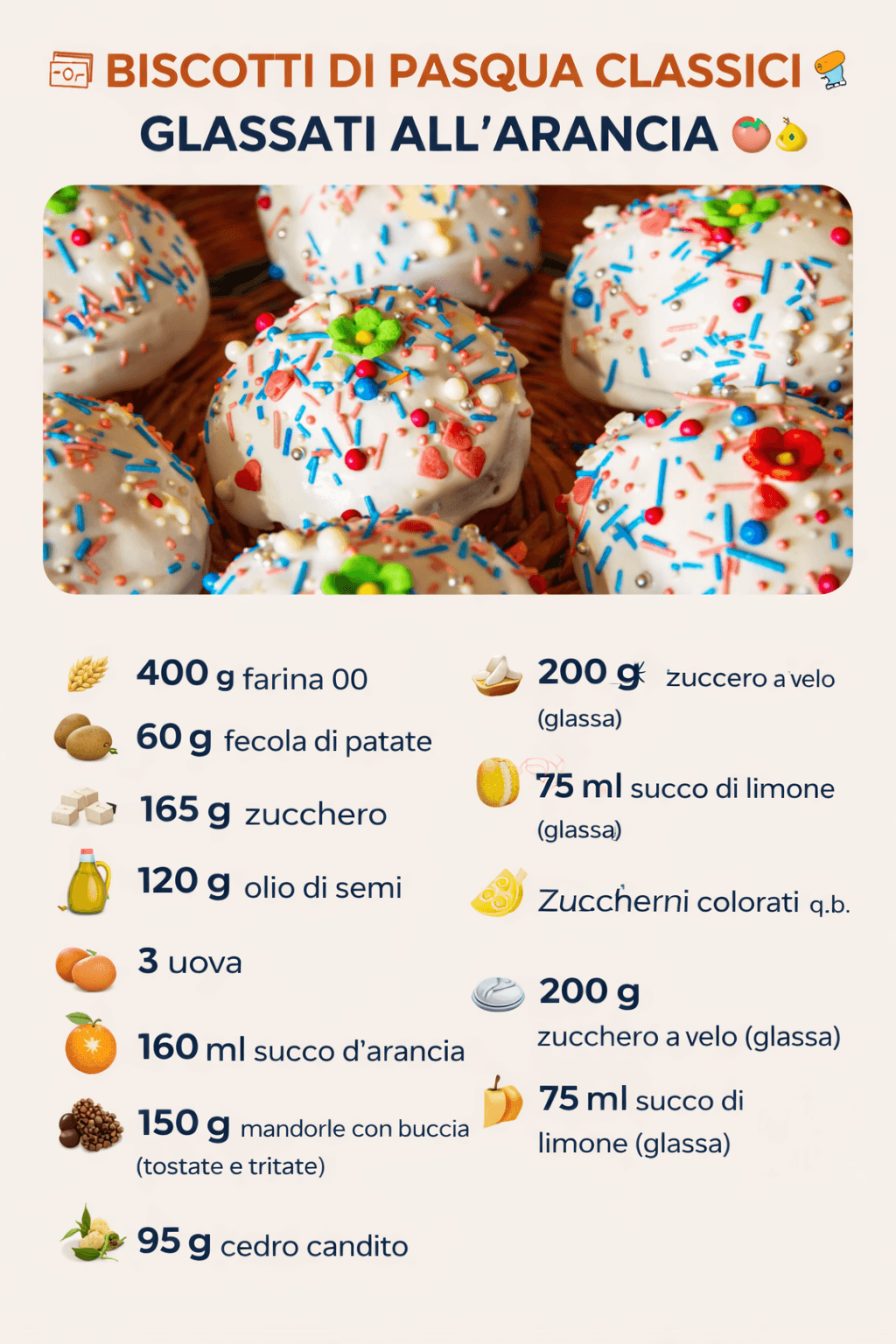 Ci sono dolci che sanno davvero di casa, e questi biscotti di Pasqua per me sono uno di quelli. Hanno il profumo dell’arancia, la consistenza morbida all’interno e quella leggera crosticina data dalla glassa al limone che li rende irresistibili. Sono biscotti semplici, ma ricchi, perfetti da preparare in anticipo e condividere nei giorni di festa.