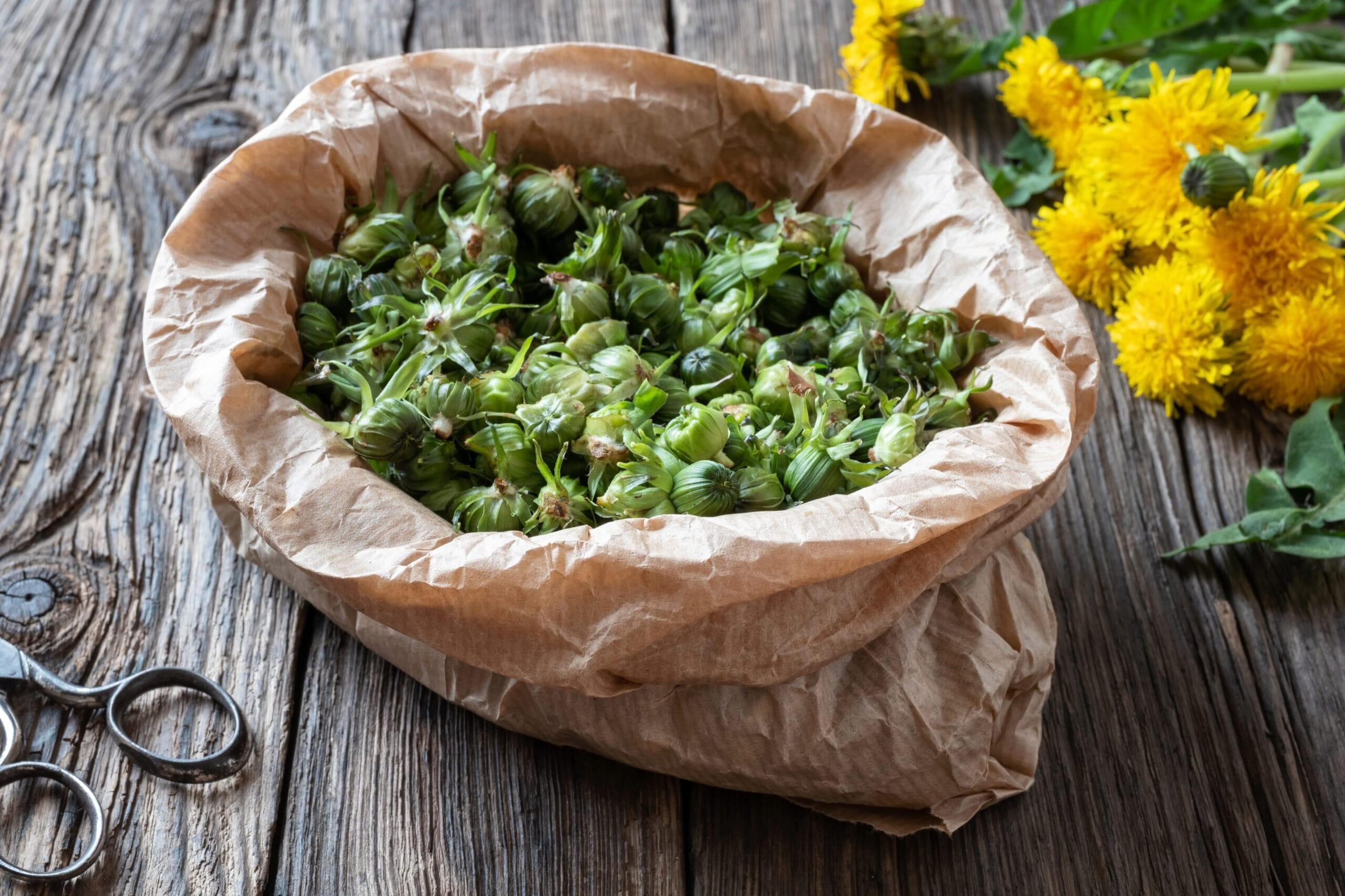 Quando raccogliamo i boccioli di tarassaco, facciamo ben attenzione a scegliere quelli ancora chiusi.