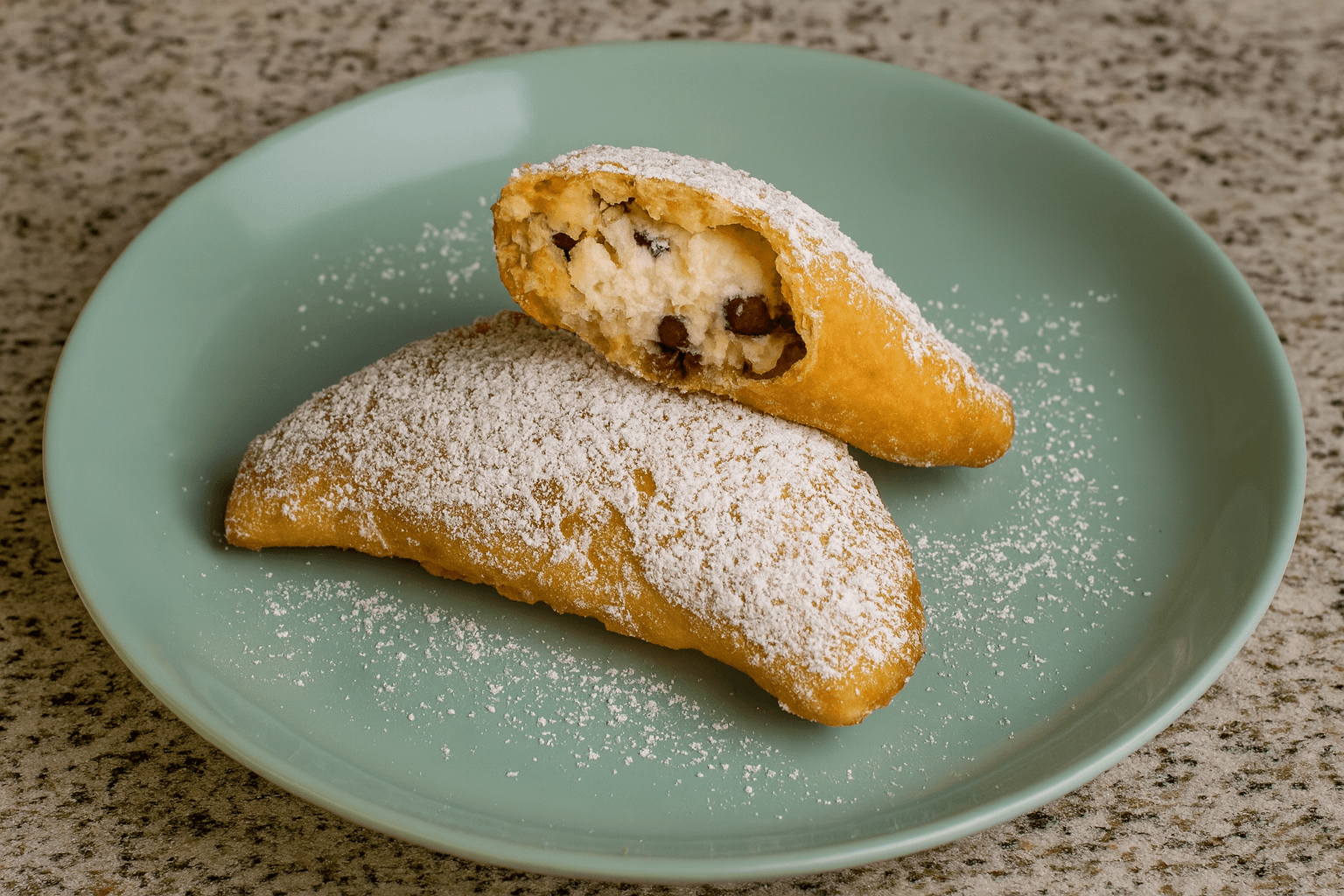 Le cassatelle siciliane vanno gustate ancora calde, spolverate con abbondante zucchero a velo. Croccanti fuori e morbide dentro, sono un vero omaggio alla pasticceria tradizionale dell’isola.