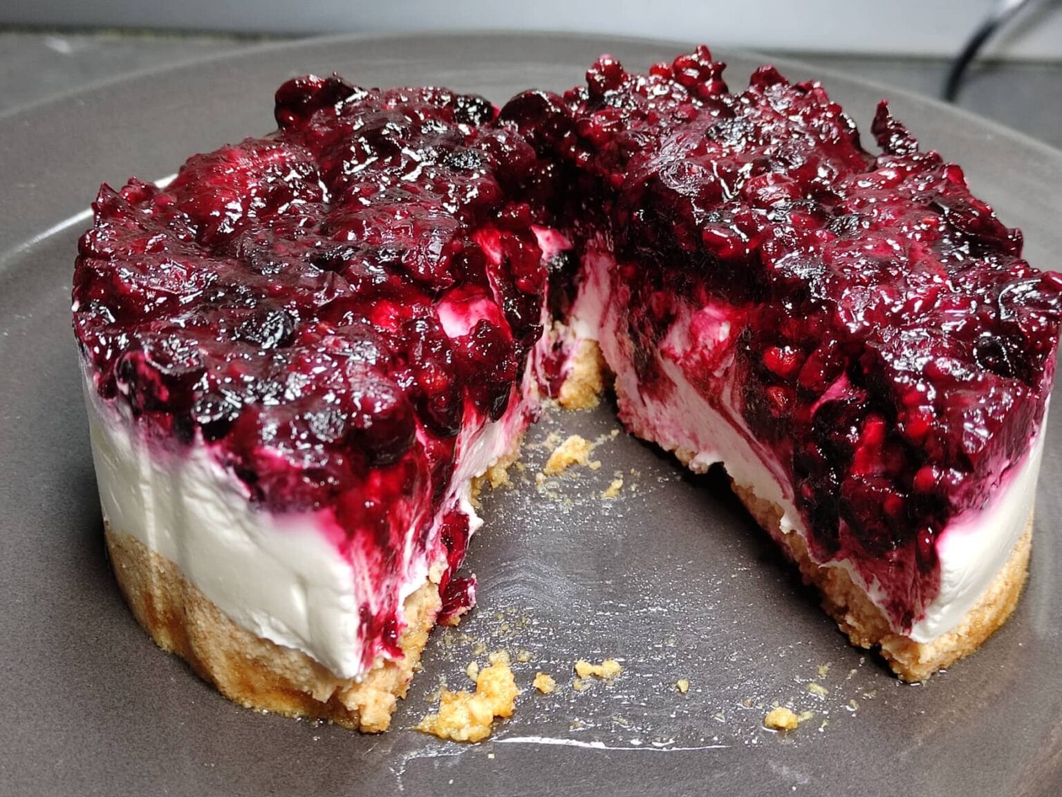 Questa cheesecake è fresca, cremosa e ideale in ogni stagione, soprattutto quando vogliamo un dessert leggero ma goloso. È anche una soluzione furba per chi è a dieta o segue uno stile di vita equilibrato, perché utilizza lo yogurt greco come base, arricchito dai frutti di bosco e da un tocco di marmellata senza zucchero.