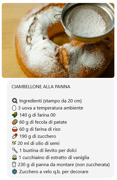 Non c’è colazione più golosa di una fetta di ciambellone alla panna appena sfornato. È uno di quei dolci che profumano tutta la casa e che restano morbidi per giorni, grazie alla panna montata usata direttamente nell’impasto. Perfetto da accompagnare con una tazza di caffè o di latte caldo, è semplice da realizzare e conquista tutti con la sua consistenza leggera e il gusto delicato di vaniglia.