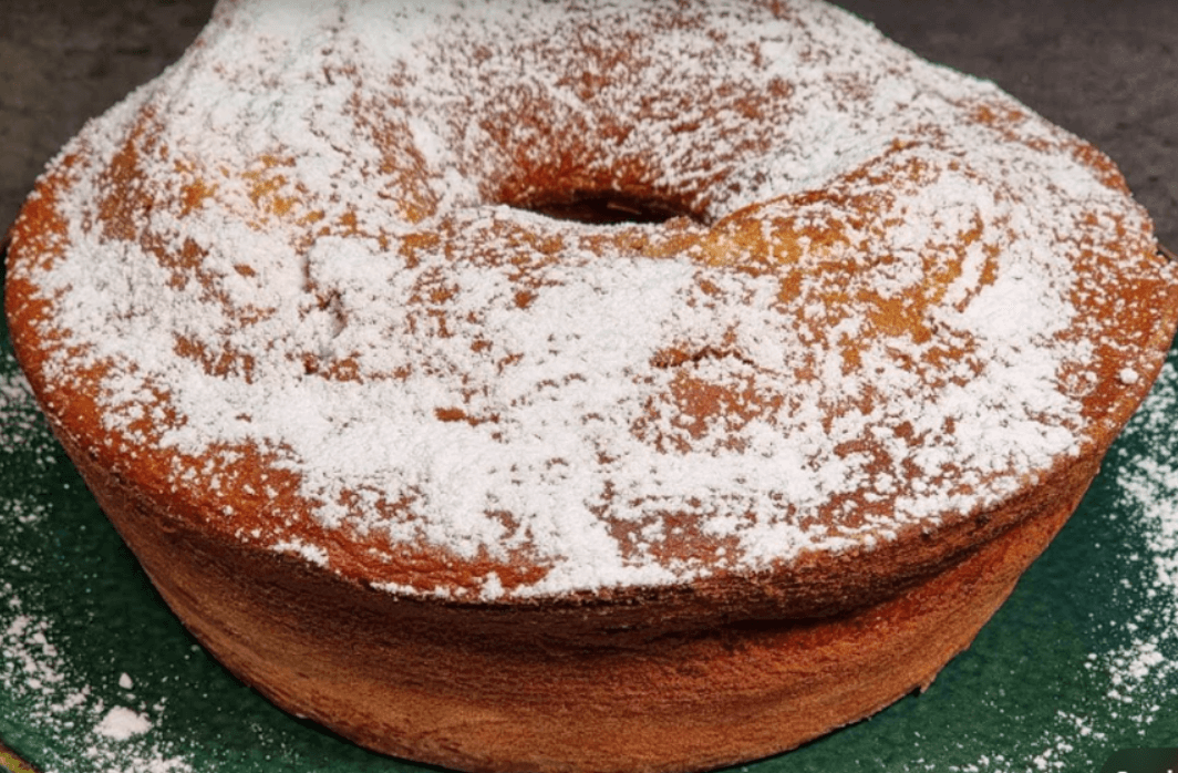 Appena il nostro ciambellone è cotto, lasciamolo raffreddare e poi spolveriamo con zucchero a velo.
