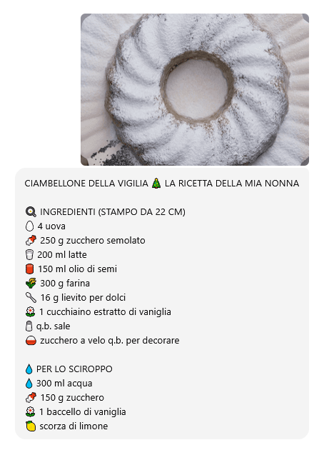 Il ciambellone della Vigilia era il dolce che la mia Nonna ci faceva trovare per la colazione dei giorni di festa più importanti del periodo Natalizio.