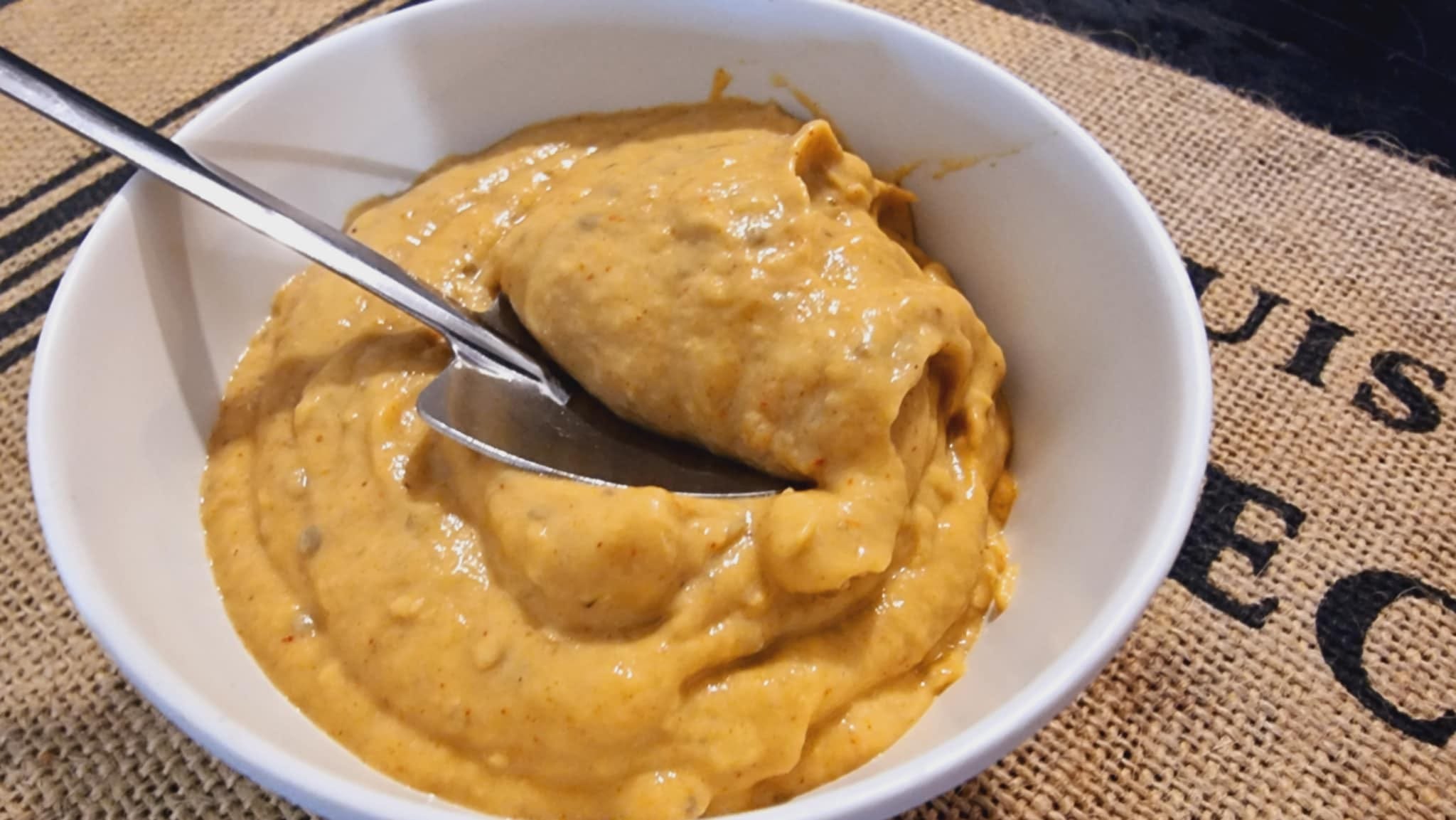 Quando la polpa è ben asciutta, la trasferisco in una ciotola e aggiungo la tahina, lo spicchio d’aglio schiacciato, il succo di limone, l’olio, un pizzico di sale e la paprika piccante. A questo punto frullo tutto con un mixer a immersione fino a ottenere una consistenza cremosa e vellutata, simile a quella della maionese.