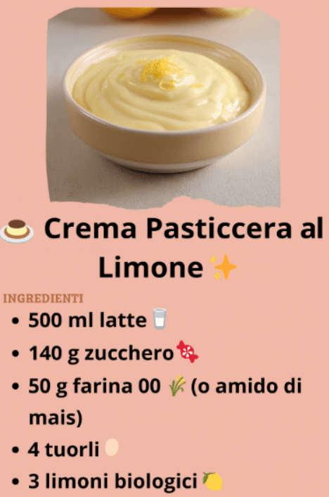 La crema pasticcera al limone è una delle varianti più fresche e golose della classica crema gialla. Morbida, vellutata e profumata agli agrumi, è perfetta per farcire crostate, bignè, rotoli, torte da forno o semplicemente da gustare al cucchiaio come dessert al cucchiaino.