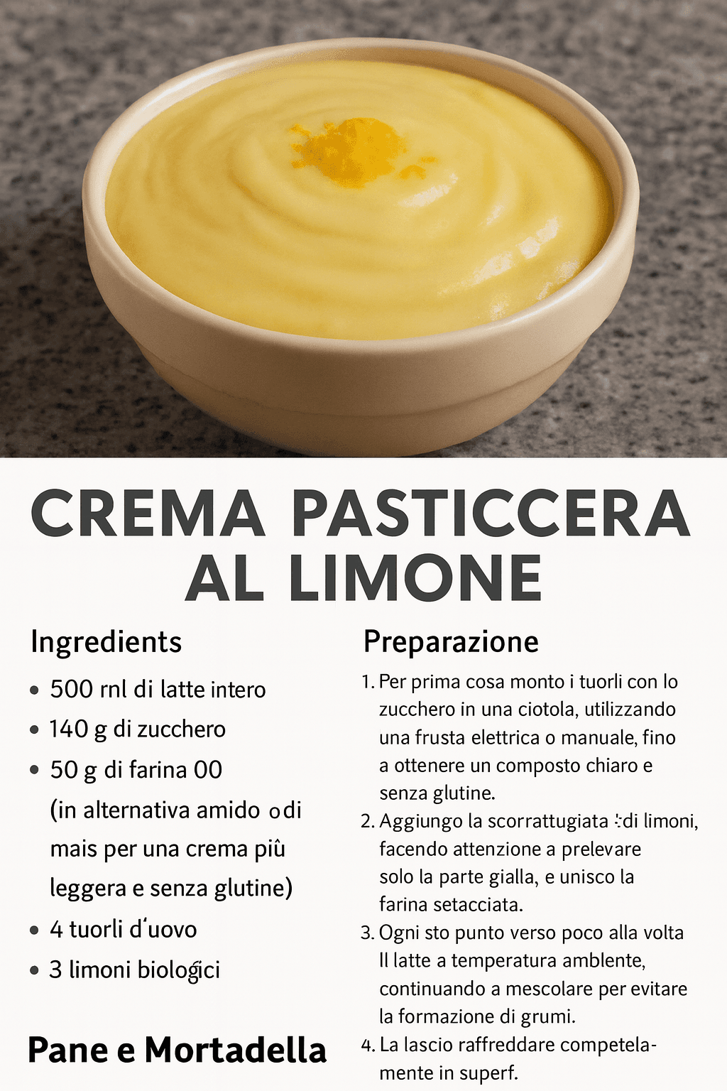 La crema pasticcera al limone è una delle varianti più fresche e golose della classica crema gialla. Morbida, vellutata e profumata agli agrumi, è perfetta per farcire crostate, bignè, rotoli, torte da forno o semplicemente da gustare al cucchiaio come dessert al cucchiaino.