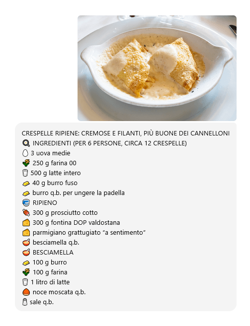 Ingredienti (per 6 persone, circa 12 crespelle)