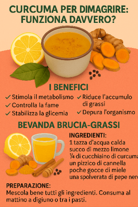 Tra le modalità di utilizzo quotidiano della curcuma, una delle più semplici è sotto forma di infuso o bevanda calda. Si propone di seguito una formulazione utile come coadiuvante nelle strategie nutrizionali di controllo del peso corporeo: