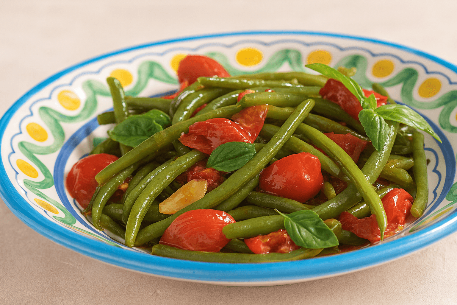 I fagiolini con pomodorini sono un contorno tipico della tradizione meridionale italiana, un piatto genuino e leggero che profuma d’estate. Prepararli è facilissimo, e il risultato è sempre saporito e colorato, ideale da portare in tavola sia a pranzo che a cena. La ricetta, pur nella sua semplicità, racchiude tutti i sapori della cucina mediterranea: la dolcezza dei pomodorini maturi, il gusto fresco dei fagiolini e l’aroma inconfondibile di aglio, basilico ed olio extravergine d’oliva.