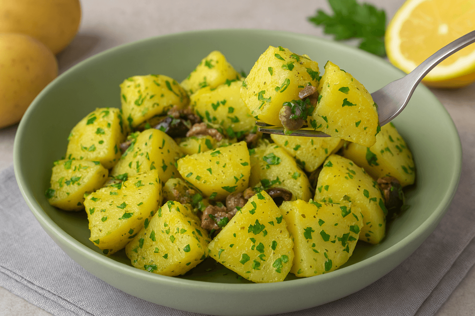 L’insalata di patate è un piatto semplice, fresco e genuino che non passa mai di moda. Si prepara in poco tempo e diventa il contorno perfetto per accompagnare piatti di carne, pesce o formaggi. In questa versione alla mediterranea, arricchita con olive taggiasche, capperi e alici, le patate si trasformano in un piatto ricco di profumi e dal sapore deciso, ideale sia d’estate che in tutte le stagioni.