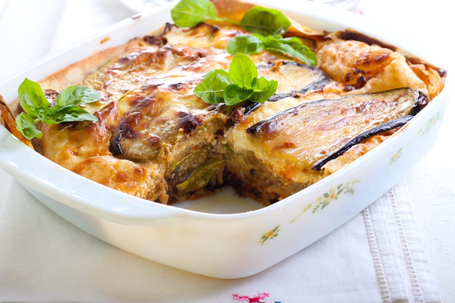 L’ho chiamata lasagna di verdure, ma in realtà non ci sono sfoglie di pasta: gli strati sono composti da fettine sottili di melanzane e zucchine, alternate a formaggi filanti e verdure saporite. È una millefoglie di ortaggi che si taglia a fette come una vera lasagna, e piace anche ai bambini.