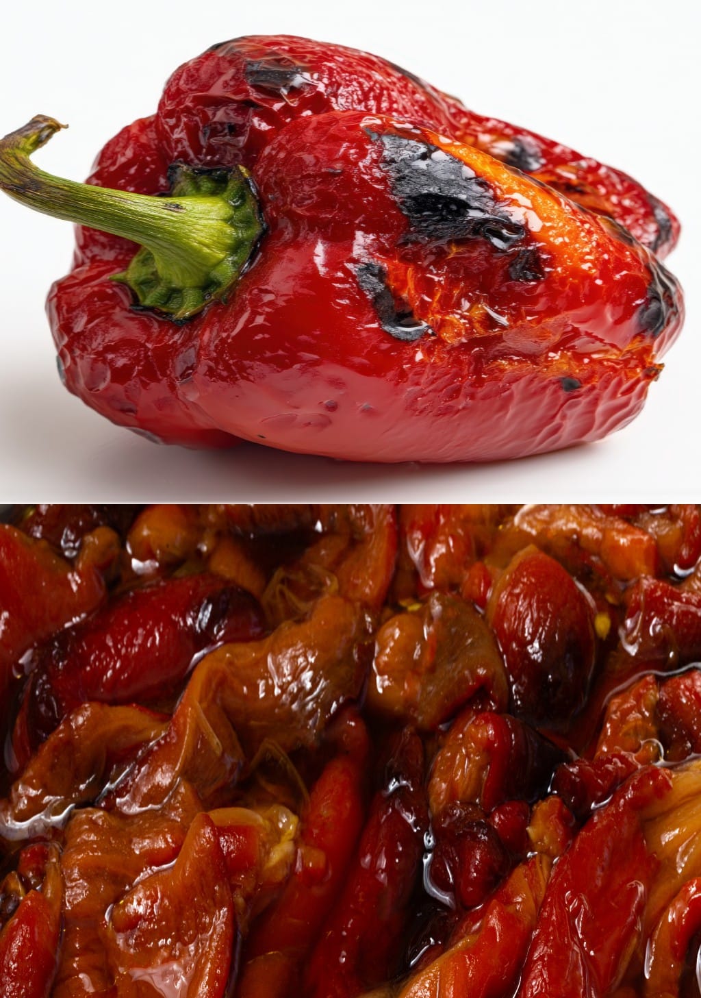 • In forno: preriscalda il forno a 220°C, disponi i peperoni interi su una teglia rivestita di carta forno e falli cuocere per circa 35-40 minuti, girandoli ogni tanto. La pelle deve risultare ben abbrustolita e la polpa morbida.