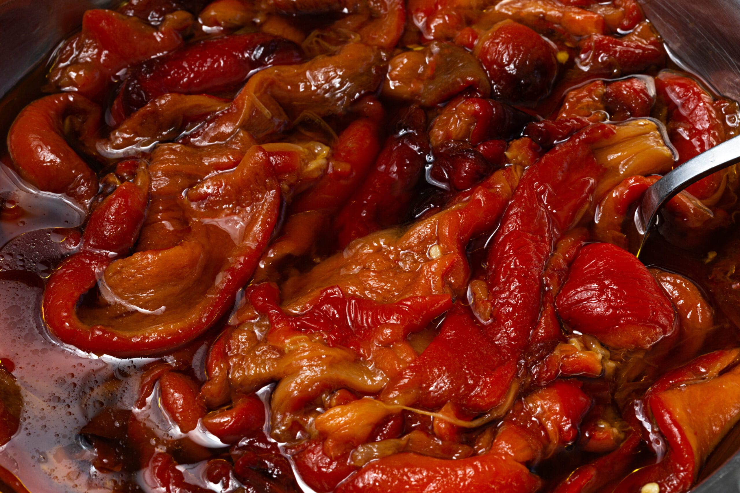 Il metodo più tradizionale è quello di arrostire i peperoni sulla fiamma viva o in forno molto caldo. Entrambi i sistemi permettono di ottenere la classica pelle annerita che si stacca facilmente.