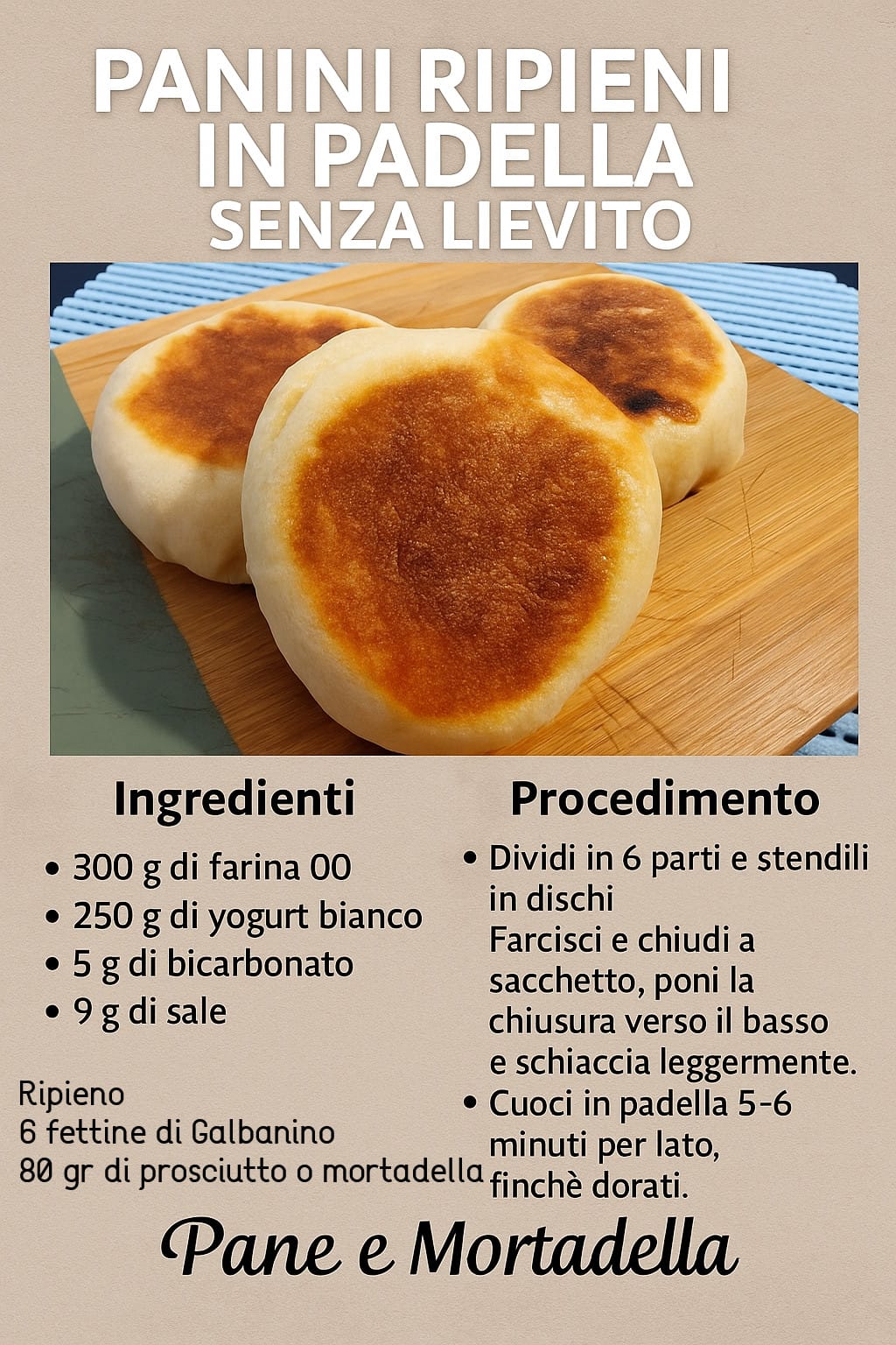 Hai voglia di preparare qualcosa di semplice, veloce e sfizioso, ma senza usare lievito né forno? Questi panini in padella ripieni, fatti con impasto allo yogurt e bicarbonato, sono la soluzione perfetta. Non richiedono tempi di lievitazione, sono soffici come una nuvola, e puoi farcirli come preferisci: con formaggi filanti, verdure, salumi o avanzi del giorno prima.
