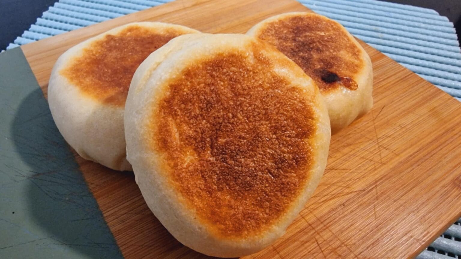 - In una padella antiaderente, versa un giro d’olio extravergine e scaldalo leggermente. Cuoci i panini a fuoco medio per 5–6 minuti per lato, finché non saranno ben dorati.
