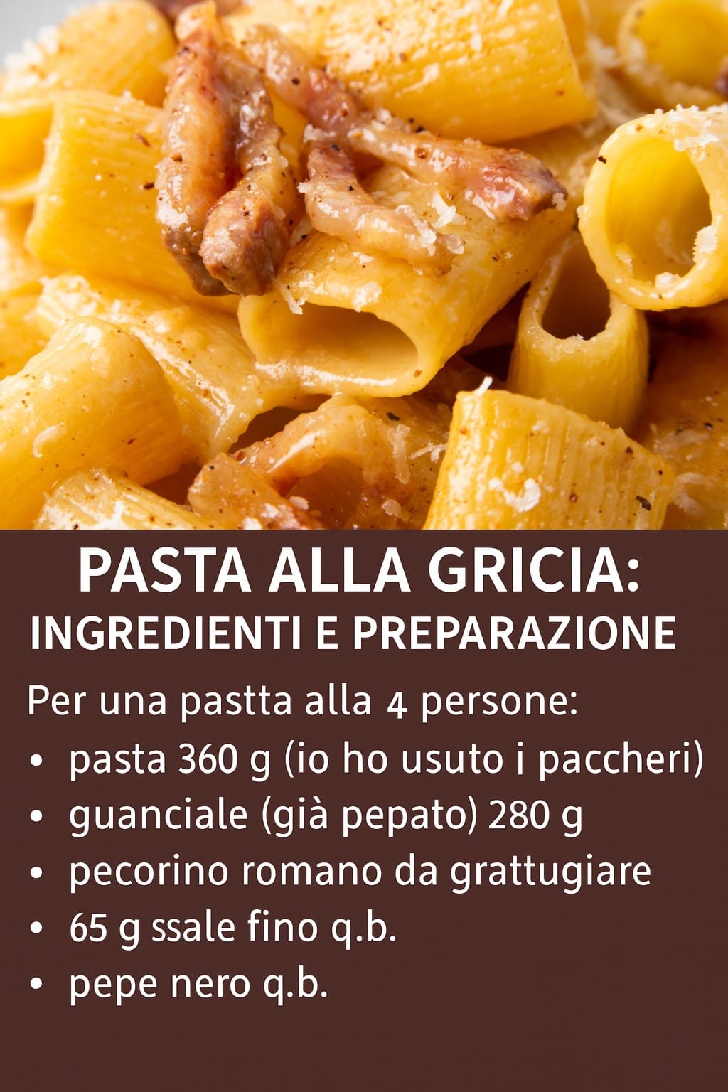 Pasta, pecorino, guanciale: null’altro serve per la gricia; per questa ricetta la tipologia di pasta che la esalta non sono solo i bucatini ma anche i paccheri, i rigatoni o i tonnarelli regalano immense soddisfazioni a palato e stomaco. Ho scoperto questo piatto durante un viaggetto a Roma e me ne sono innamorata, se non lo conoscete anche voi perderete la testa. Se, invece, lo avete già provato, sono certa che sarete felici di poterlo riproporre anche in famiglia.