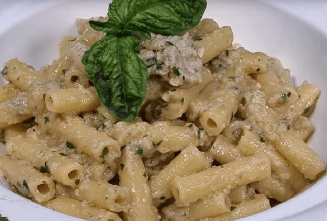 Lasciamo rosolare leggermente e preleviamo con una schiumarola la pasta, uniamola in padella con un mestolo di acqua di cottura, eliminiamo l’aglio e il prezzemolo, e risottiamo. Ora condiamo con la nostra crema e amalgamiamo tutto per bene.