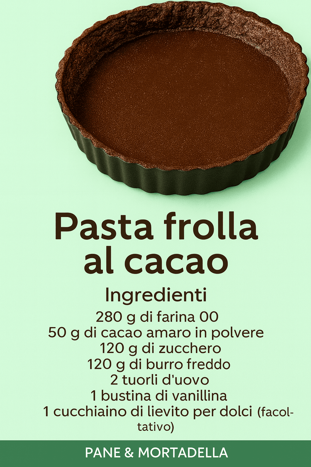 Una pasta frolla al cacao semplice e friabile, perfetta per crostate e biscotti. Ricetta classica con burro e tuorli, pronta in pochi minuti.