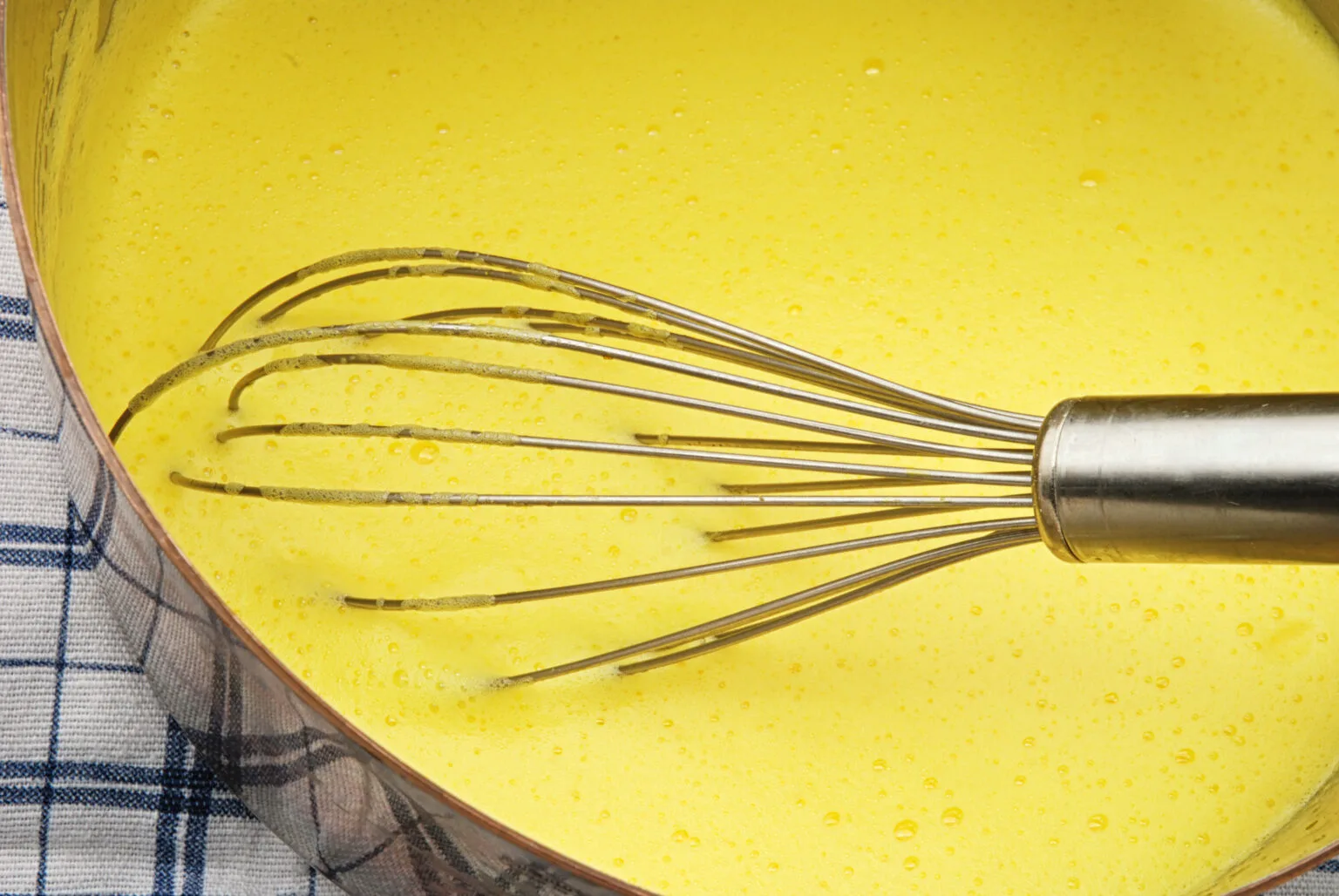 Portiamo l’acqua ad ebollizione mescolando di continuo con una frusta le uova con lo zucchero. Quando l’acqua comincia a bollire continuiamo a cuocere le uova a bagnomaria ancora per qualche minuto. Il composto apparirà denso e cremoso.