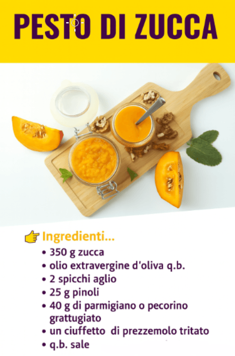 Amo il pesto come preparazione in generale. Ovviamente quello genovese è superlativo, ma devo dire che mi piace molto variare con preparazioni alternative, come quello alle zucchine, di melanzane, di rucola, per arrivare a quelli ancora più originali come quello di aglio orsino o di ortica. Ma in autunno, il mio prediletto è il pesto di zucca.