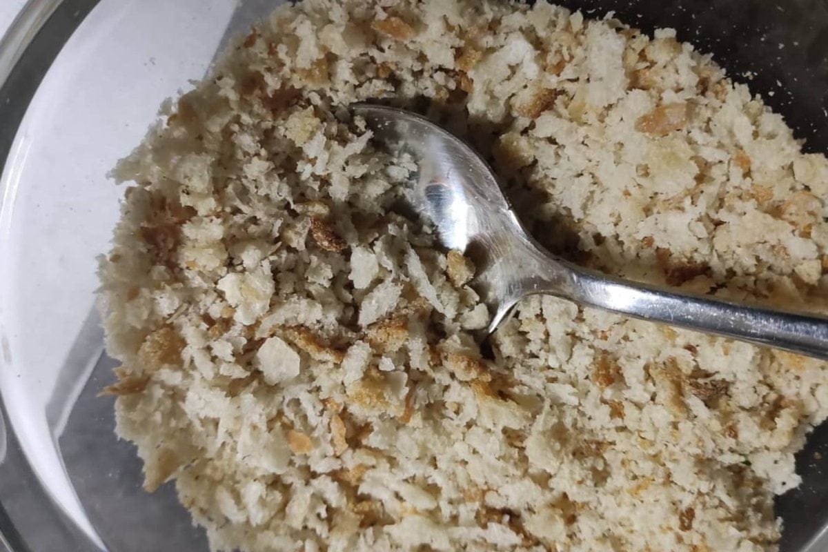 - 5 cucchiai di pane raffermo tritato grossolanamente
