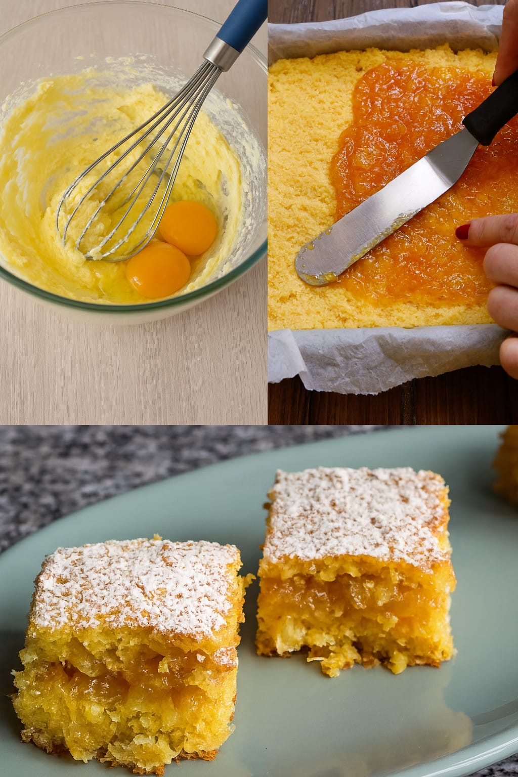 Se ami i dolci semplici ma dal gusto intenso, questi quadrotti sono perfetti: un impasto morbido al cocco, farcito con marmellata di arance con la buccia e rifinito con una spolverata di zucchero a velo. Una ricetta genuina, ideale da servire a colazione, a merenda o con una tazza di tè.