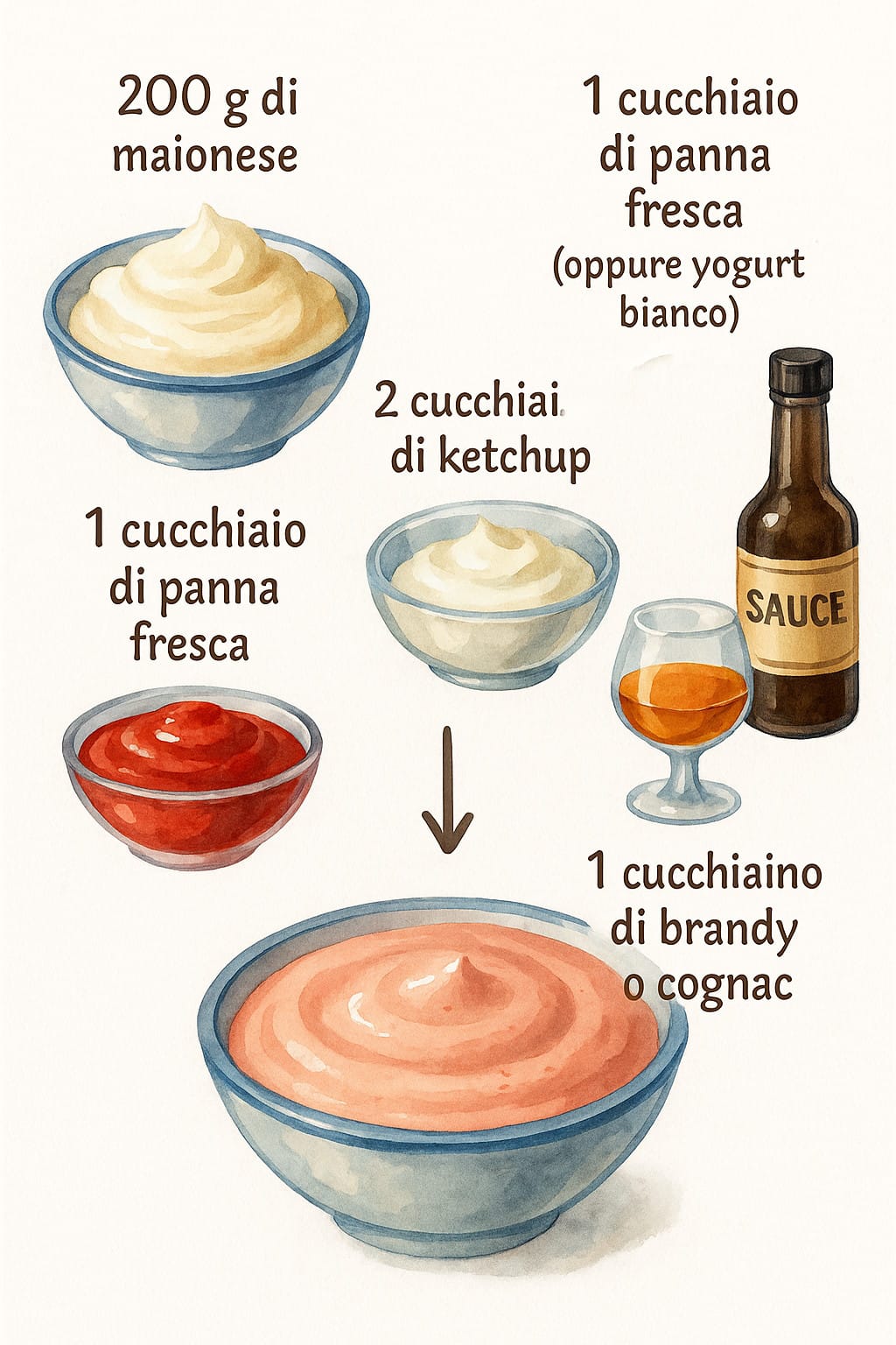 La salsa rosa fatta in casa si conserva in frigorifero, ben coperta, per un massimo di 2–3 giorni.