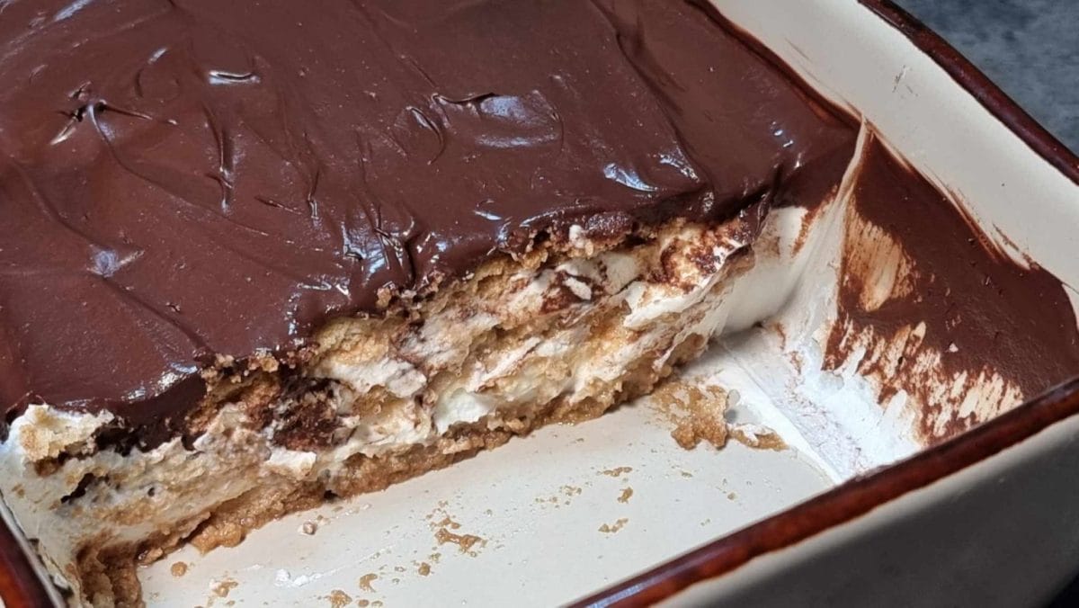 Ora in una ciotolina mettiamo il cacao amaro con 75 ml di acqua e qualche goccia di dolcificante. Formiamo una bella cremina e stendiamola sull’ultimo strato di biscotti.