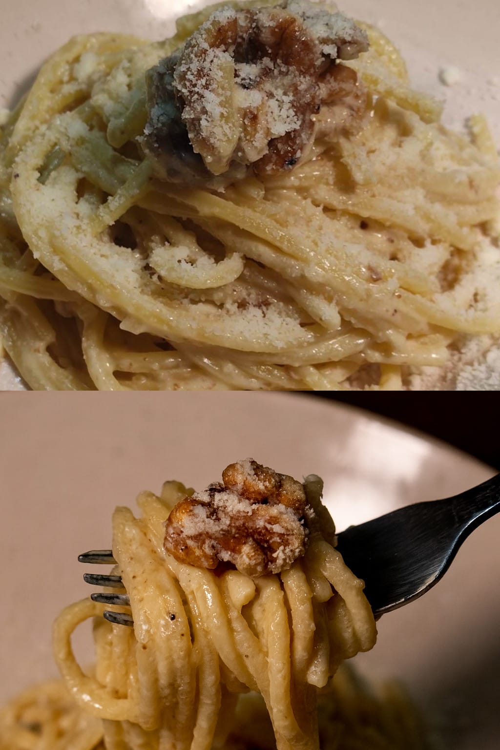 Gli spaghetti alle noci sono uno di quei piatti semplici che sanno di casa e di ricordi. Li preparava sempre mio nonno Giovanni, ed è rimasta una tradizione che porto avanti con affetto. In famiglia piacciono a tutti, ma ci sono due grandi estimatori: il mio secondo figlio e mia madre, che ne andava letteralmente pazza.