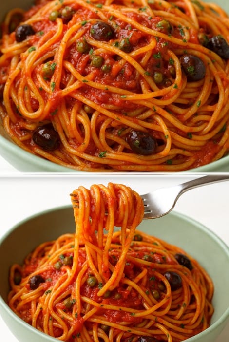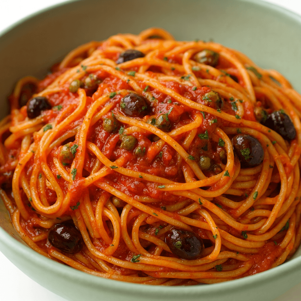Gli spaghetti olive e capperi alla napoletana sono un primo piatto semplice ma ricco di gusto, tipico della tradizione mediterranea. Bastano pochi ingredienti genuini – pomodori pelati, olive nere, capperi e un buon filo di olio extravergine – per portare a tavola un piatto profumato, leggero e irresistibile.
