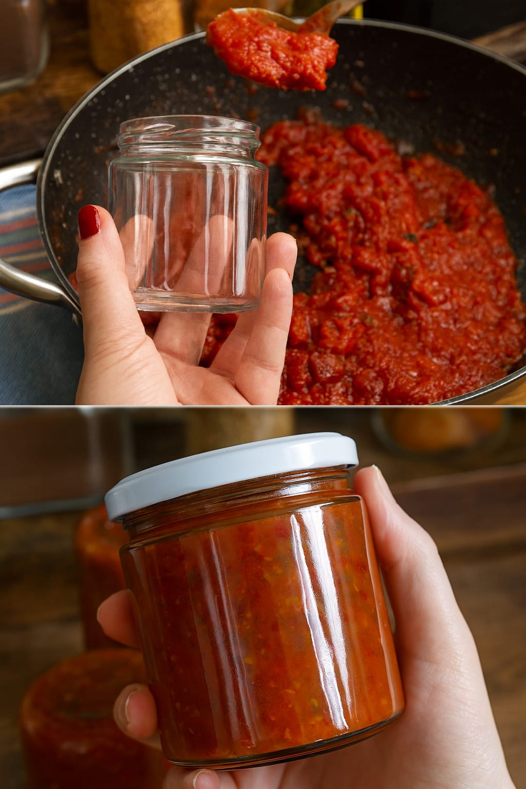 Conservata in un luogo fresco, asciutto e lontano dalla luce diretta, questa salsa resta perfetta fino a un anno.