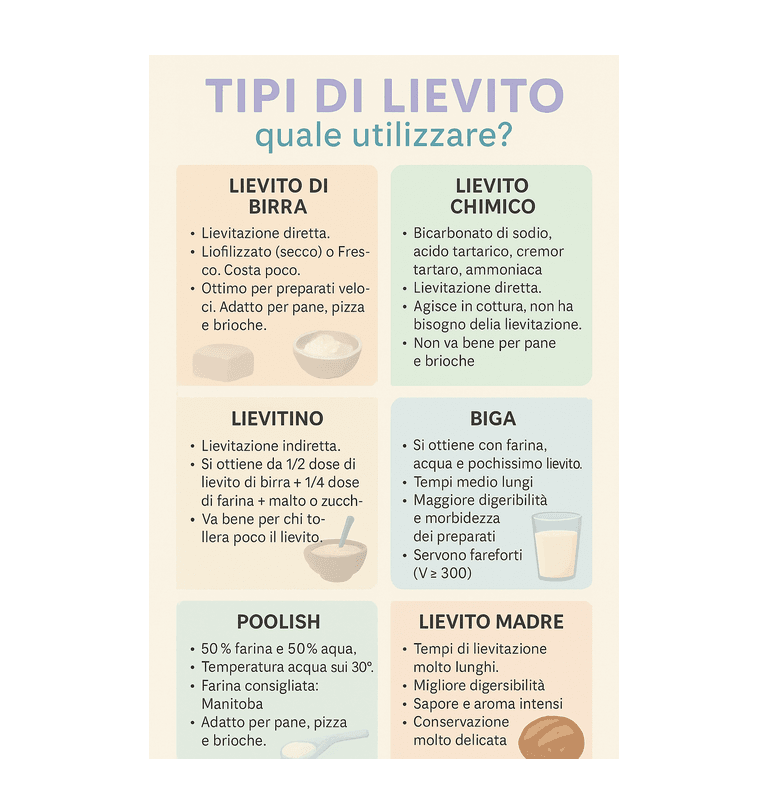 Ogni tipo di lievito ha la sua storia, i suoi tempi e il suo carattere. Non esiste un “migliore in assoluto”, ma piuttosto il più adatto in base alla ricetta, al tempo che abbiamo e al risultato che desideriamo ottenere.