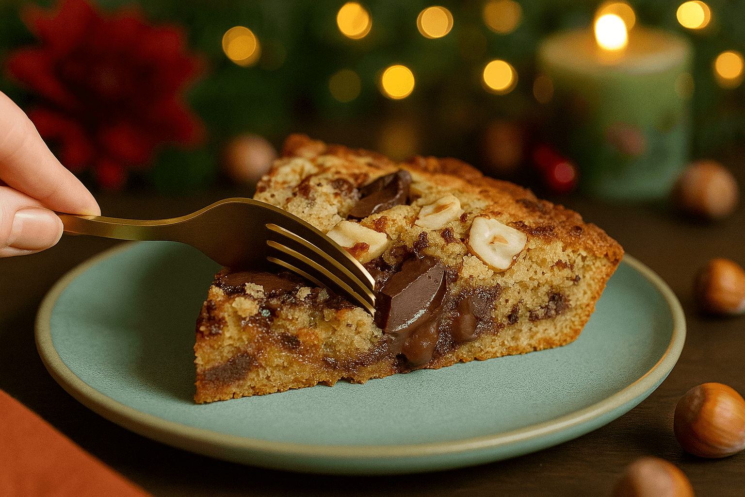 La torta cookie è uno di quei dolci che mettono d’accordo grandi e piccoli. Morbida al centro, leggermente croccante ai bordi e piena di pezzi di cioccolato e nocciole, ricorda i famosi biscotti americani… ma in versione maxi. Si prepara in pochissimo tempo ed è perfetta per una merenda golosa, una colazione diversa dal solito o un dessert dell’ultimo minuto quando arrivano ospiti. Con profumo di vaniglia, cuore fondente e quella consistenza umida che conquista sempre, questa ricetta diventerà un tuo cavallo di battaglia.