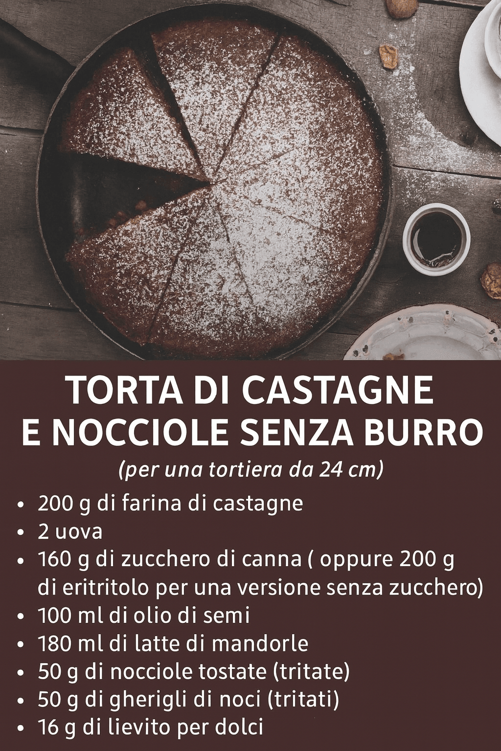 La torta di castagne e nocciole senza burro è un dolce perfetto per la stagione autunnale, morbido, profumato e naturalmente ricco di gusto.