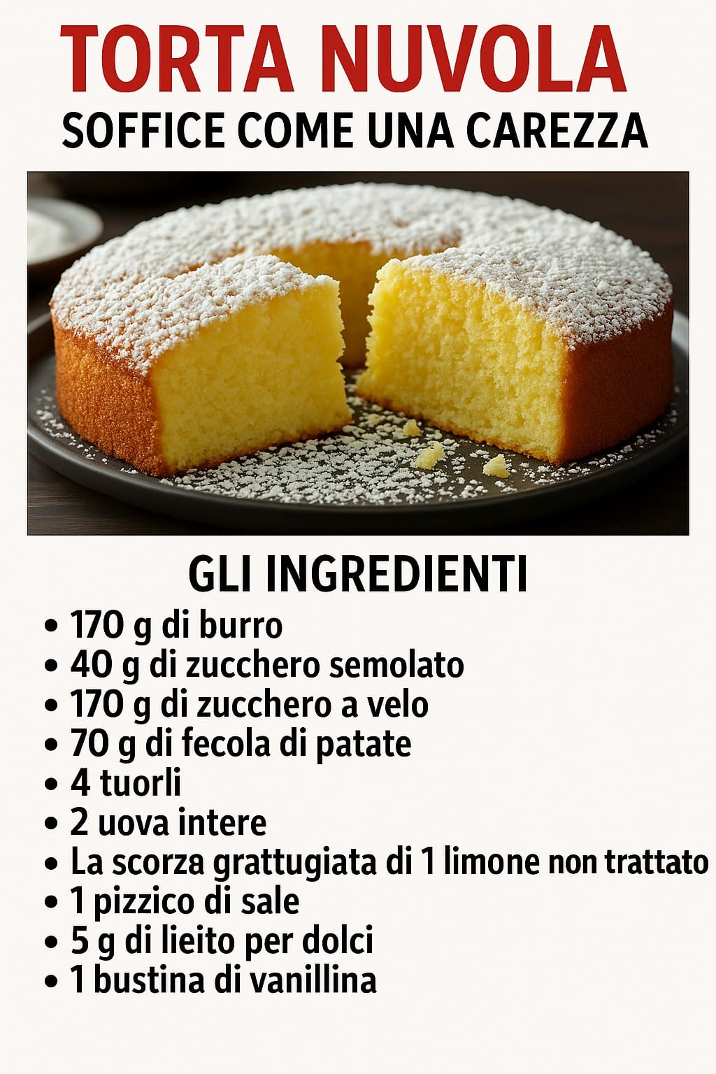 Oggi voglio condividere con voi una delle torte che più amo preparare quando ho voglia di qualcosa di semplice, ma allo stesso tempo elegante e irresistibile: la Torta Nuvola. La chiamo così perché, già al primo morso, ti avvolge con la sua morbidezza e leggerezza, proprio come una nuvola.