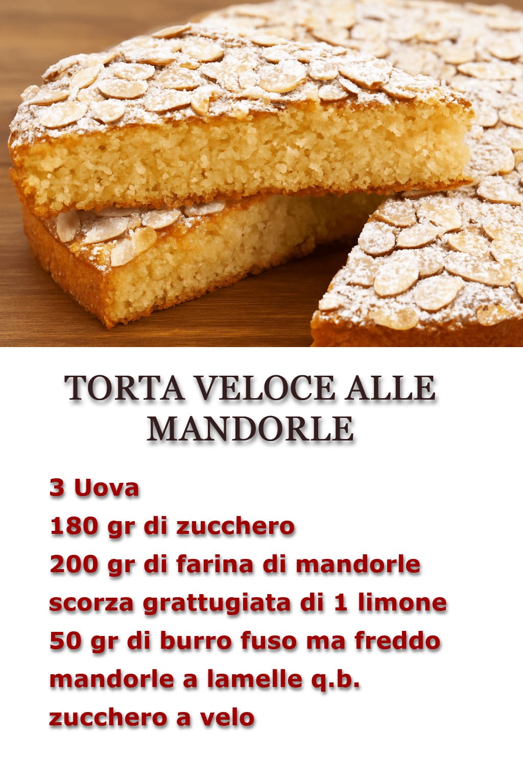 TORTA VELOCE ALLE MANDORLE: SI SCIOGLIE IN BOCCA
