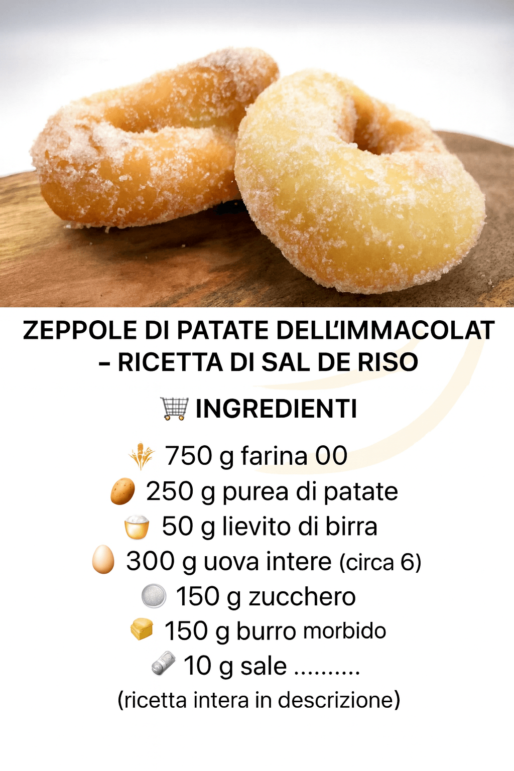 E siamo quasi a Natale, fioccano i suoi regali! Tra questi non potevano mancare i consigli e il procedimento per realizzare il suo dolce dell’Immacolata, le zeppole di patate, per l’appunto!