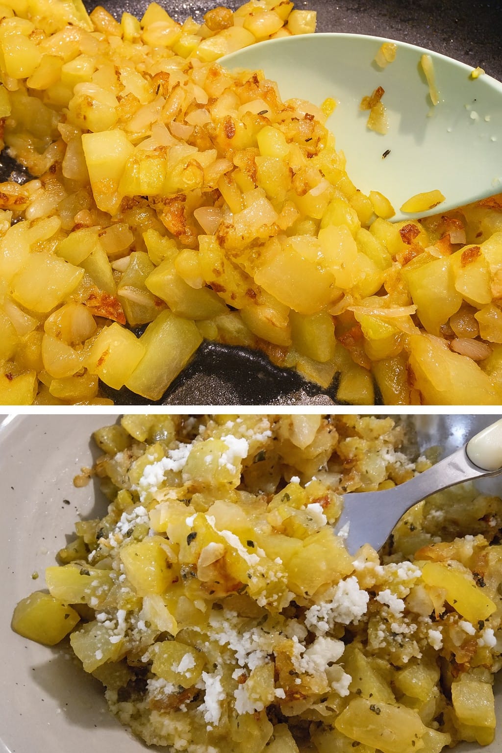 La cottura deve essere a fiamma medio-alta, senza mai aggiungere acqua: le zucchine devono rosolare, non lessarsi. Quando iniziano a dorarsi aggiungo pepe e origano, e dopo pochi minuti spengo il fuoco.